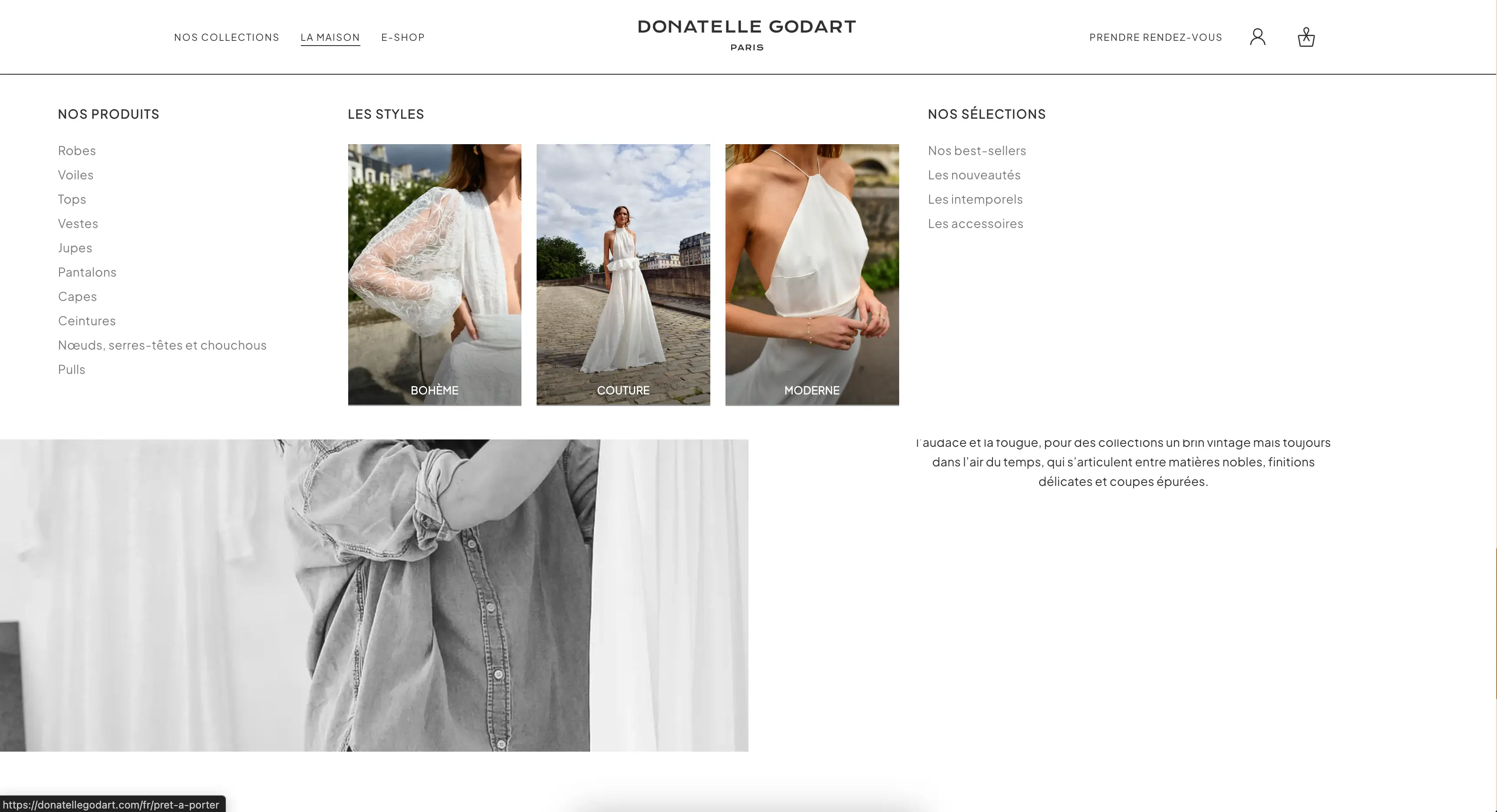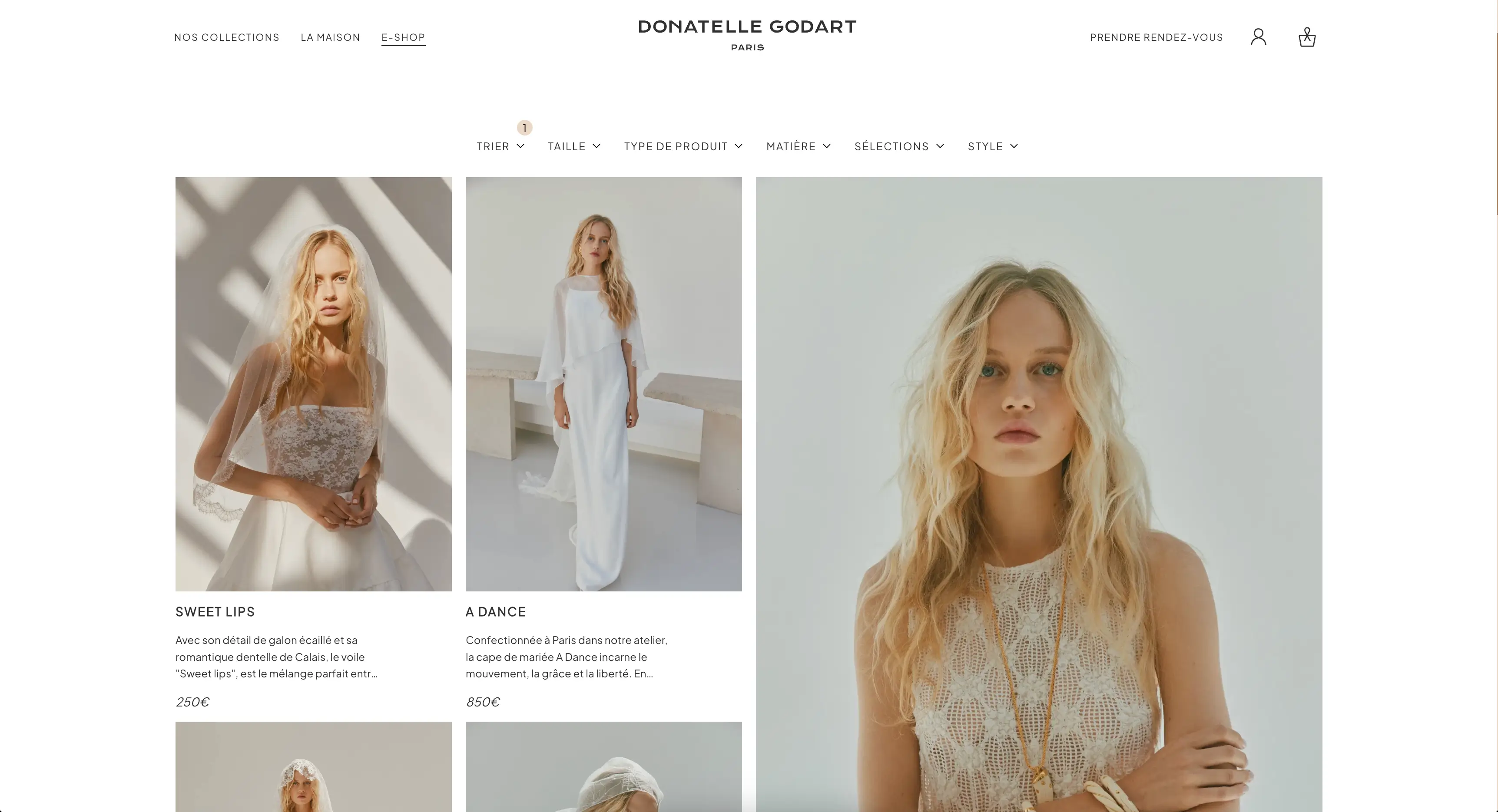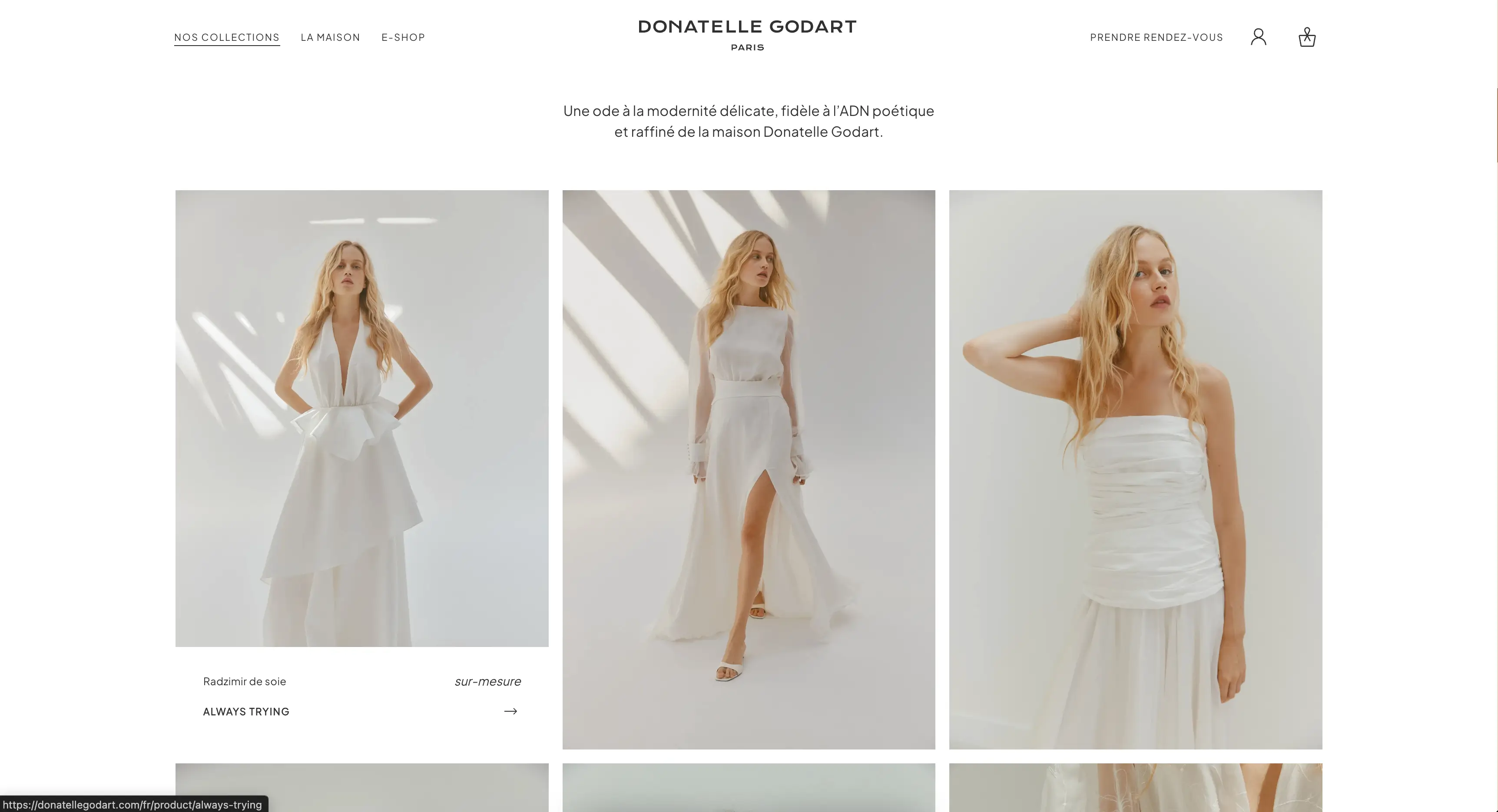 Donatelle Godart was my first full e-commerce project, built for a luxury bridal brand. I handled part of the backend with Strapi and Medusa and the frontend using Nuxt for an elegant user experience. This project allowed me to explore the full scope of an e-commerce platform, from content and product management to checkout flows, while maintaining a refined and premium visual identity.