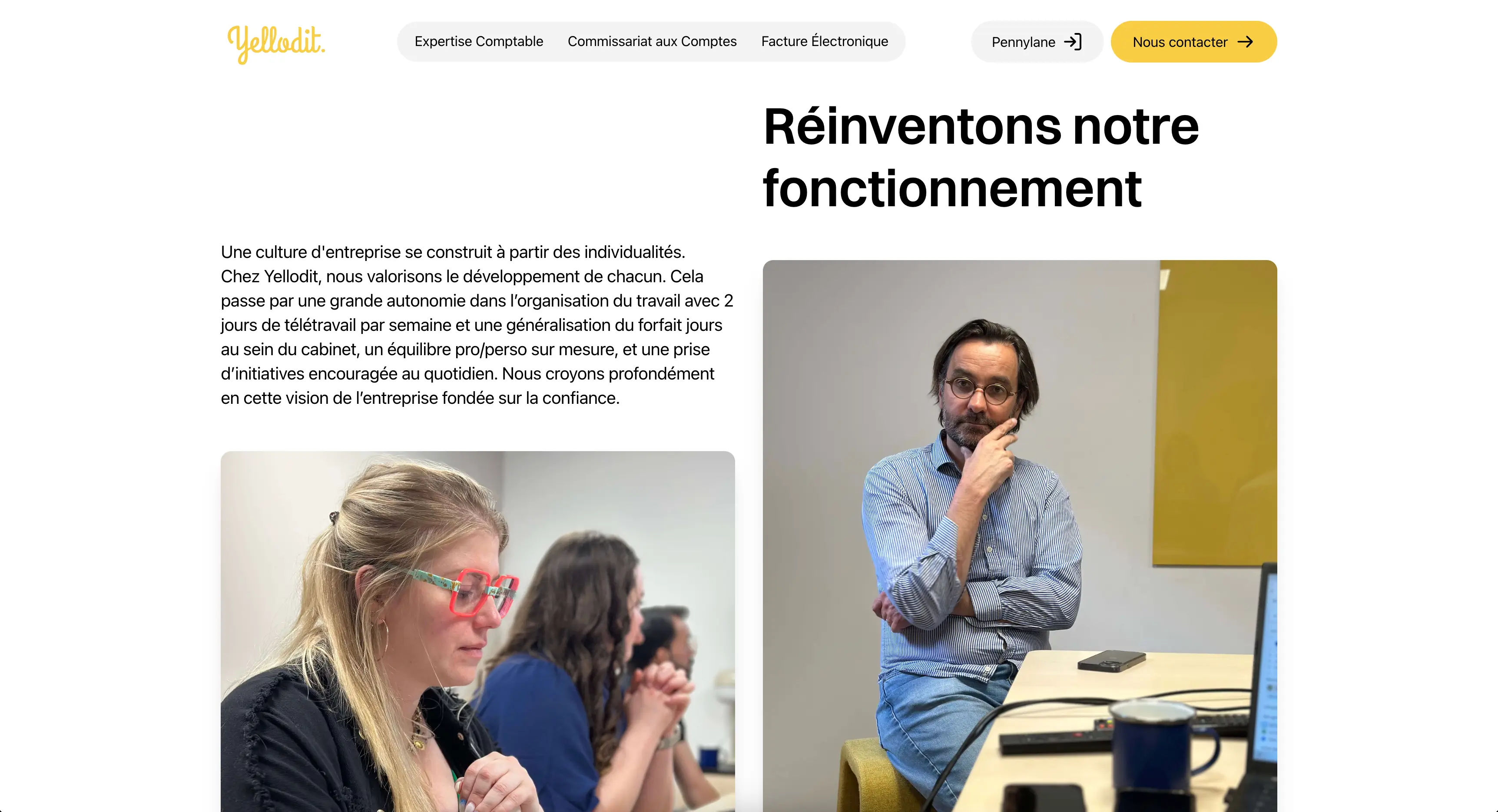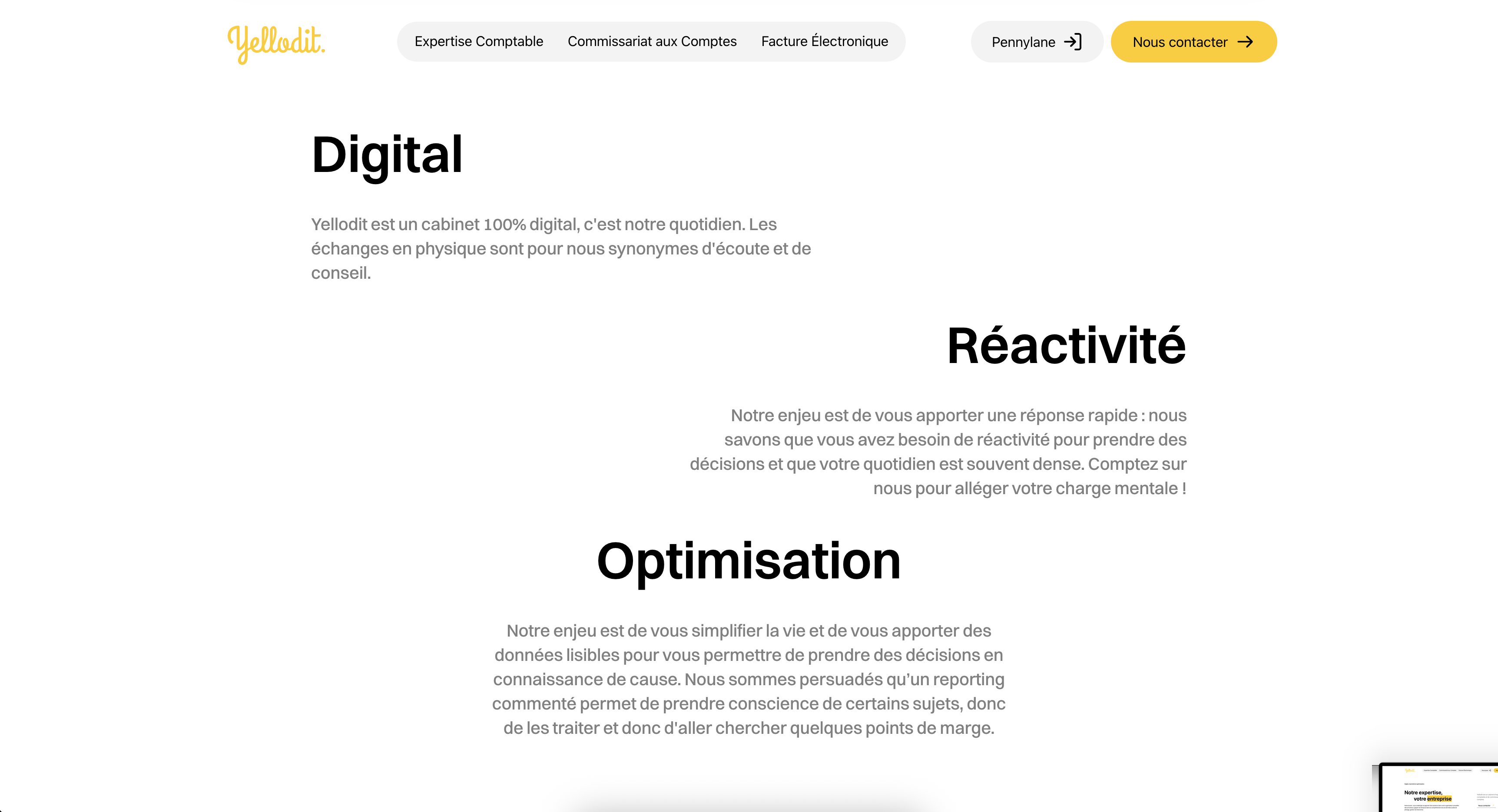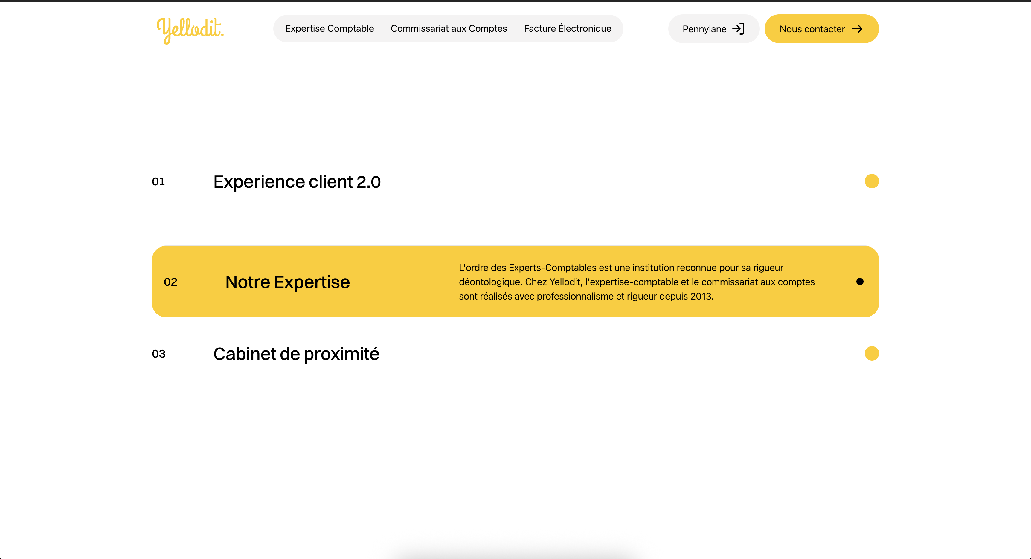 Yellodit was a small redesign project where I took care of both design and frontend development. The objective was to give an accounting agency a more fun and pop visual identity, while keeping the experience simple, clear, and professional.